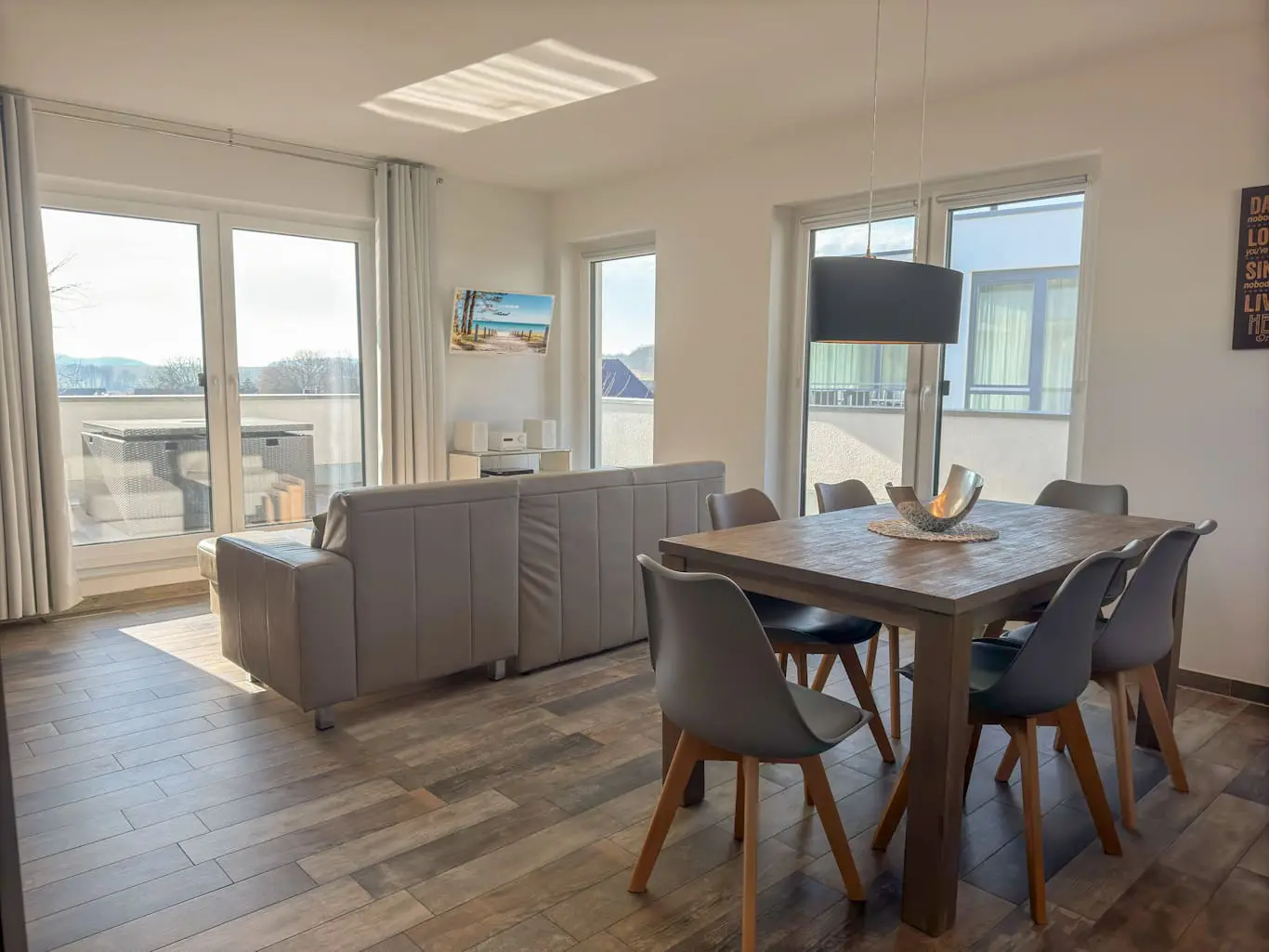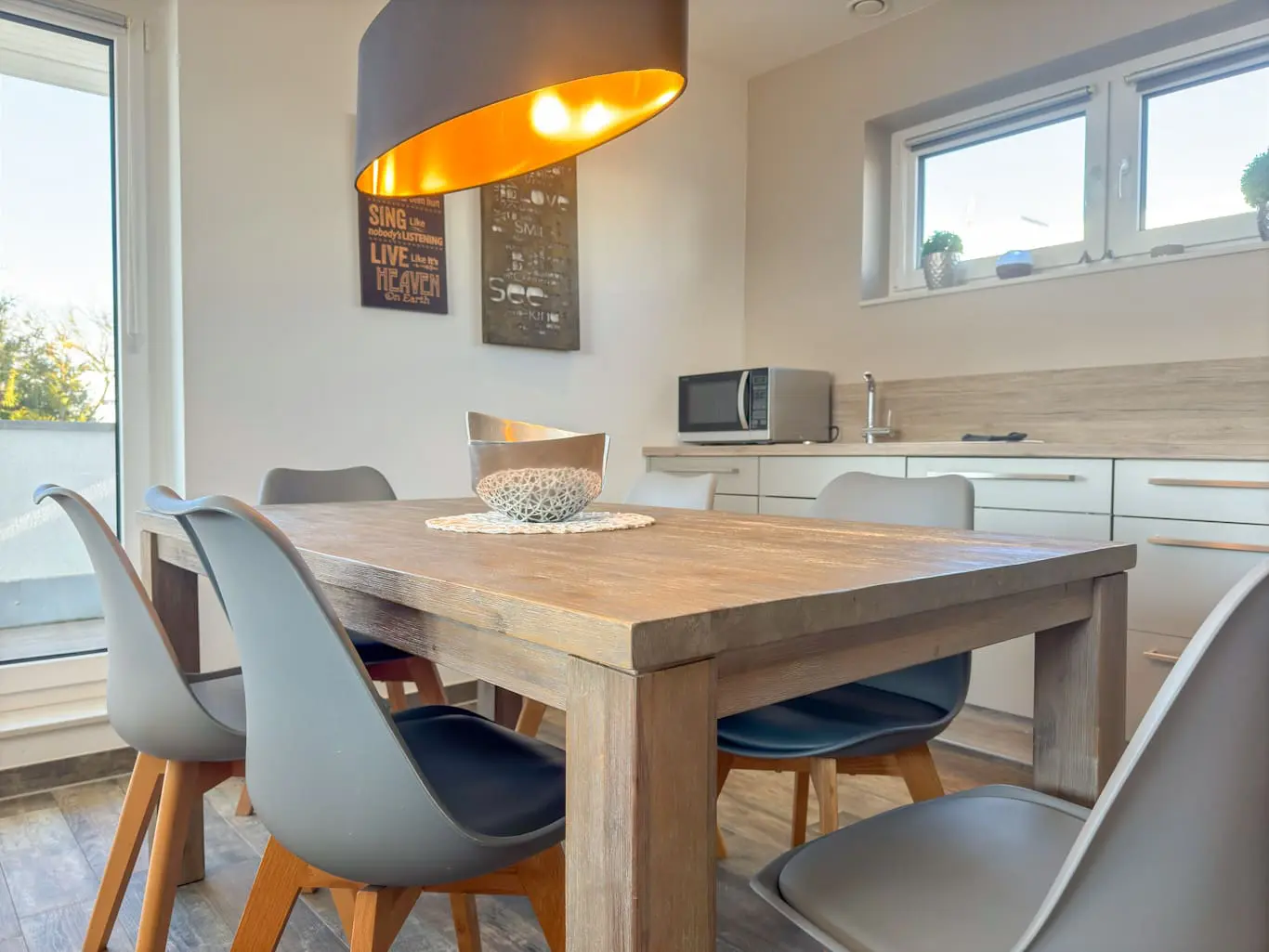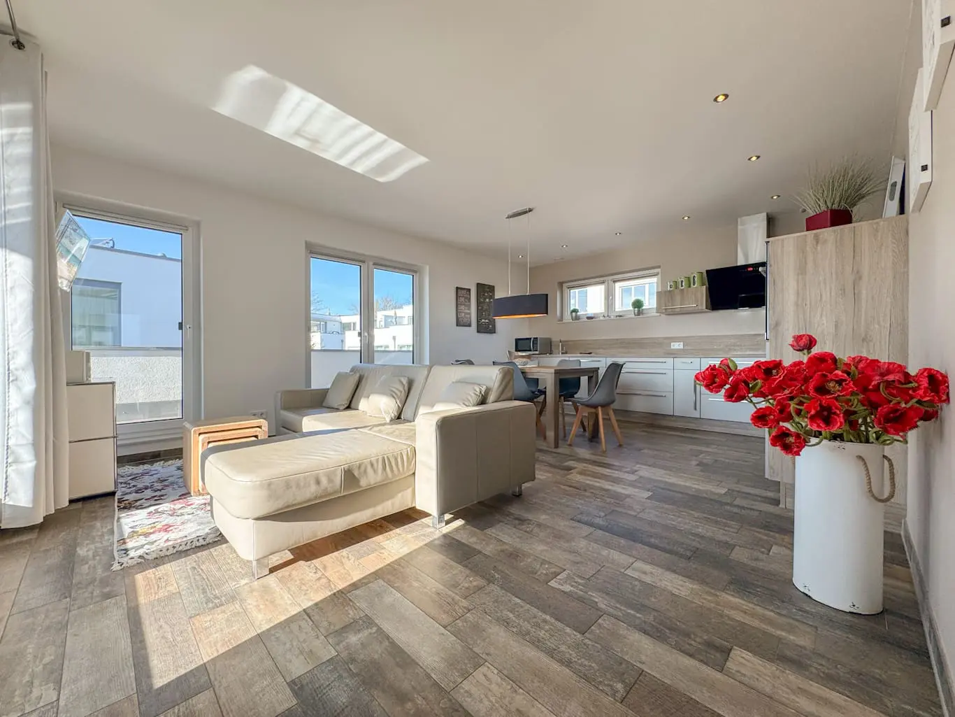Das Apartment „Horizont-Loft“ in der stilvollen „Villa Nova“ bietet exklusiven Wohnkomfort in bester Lage von Binz. Mit einer großzügigen Wohnfläche von ca. 82 m² und einer beeindruckenden 34 m² großen, sonnigen Dachterrasse ist dieses Urlaubsapartment ideal für alle, die eine Kombination aus Eleganz und Entspannung suchen. Das Obergeschoss-Apartment verfügt über zwei komfortable Schlafzimmer, einen lichtdurchfluteten Wohn- und Essbereich mit direktem Zugang zur Dachterrasse sowie ein modernes Badezimmer mit ebenerdiger Dusche. Der durchdachte Grundriss und die hochwertige Ausstattung sorgen für ein stilvolles Ambiente. Ein Parkplatz direkt vor der Haustür sowie Fahrradabstellmöglichkeiten stehen Ihnen während Ihres Aufenthalts zur Verfügung. Das Horizont-Loft ist perfekt für anspruchsvolle Urlauber, die besonderen Wohnkomfort und großzügige Außenflächen genießen möchten.