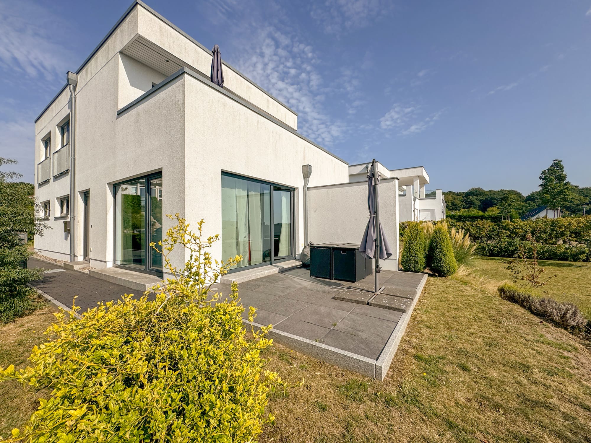 Willkommen in Ihrem stilvollen Rückzugsort! Dieses ca. 70 m² große, ebenerdige Apartment bietet höchsten Wohnkomfort und eine hochwertige Ausstattung – perfekt für Paare oder kleine Familien, die eine entspannte Auszeit an der Ostsee genießen möchten. Der großzügige Wohn- und Essbereich führt direkt auf die Sonnenterrasse mit Zugang zum Garten und lädt zu entspannten Stunden im Freien ein. Das gemütliche Schlafzimmer bietet eine angenehme Rückzugsmöglichkeit für erholsame Nächte, während das moderne, große Badezimmer mit stilvollen Details zusätzlichen Komfort bietet. Die hochwertige Ausstattung schafft eine elegante und behagliche Atmosphäre. Ein eigener Außenstellplatz direkt vor der Wohnung sowie Fahrradstellplätze stehen Ihnen während Ihres Aufenthalts zur Verfügung. Genießen Sie die ruhige Lage und den Komfort dieses charmanten Apartments – wir freuen uns darauf, Sie willkommen zu heißen!
