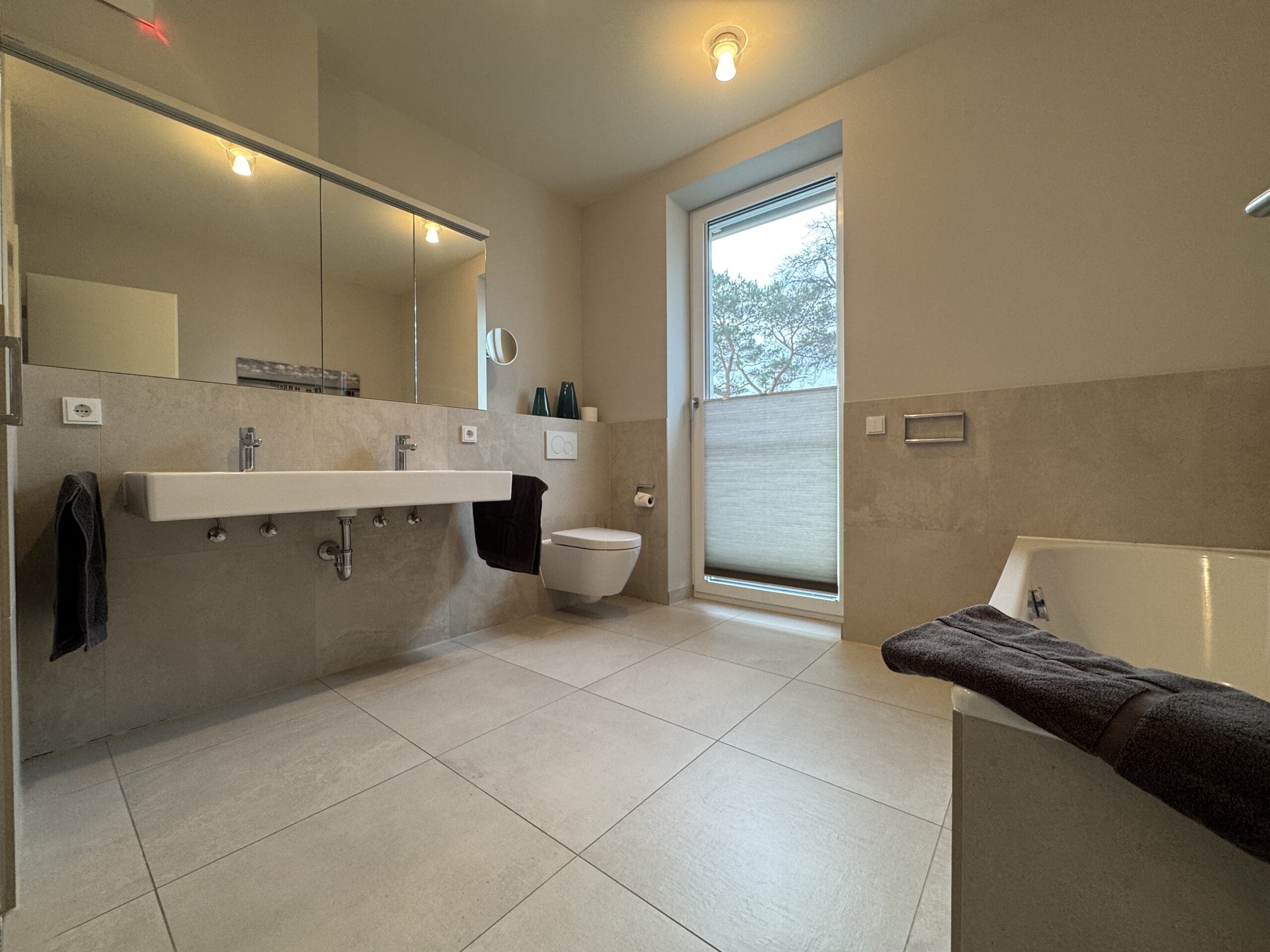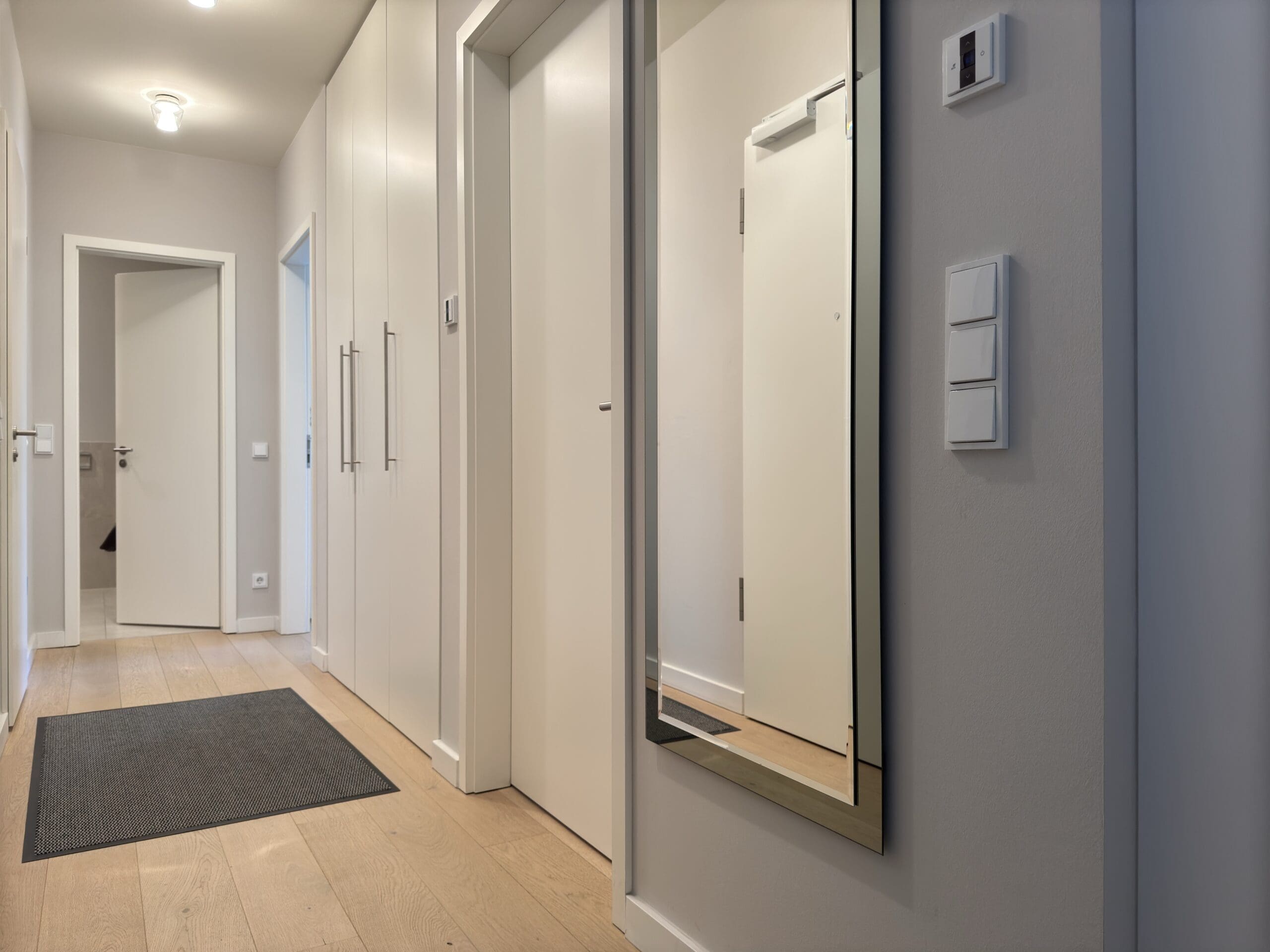 Die Wohnung verfügt über zwei Schlafzimmer und zwei moderne Bäder, eines davon mit zusätzlicher Badewanne. Die hochwertige, voll ausgestattete Küche lässt keine Wünsche offen. Außenjalousien und Fensterläden sorgen für eine vollständige Verdunklung und angenehme Privatsphäre.